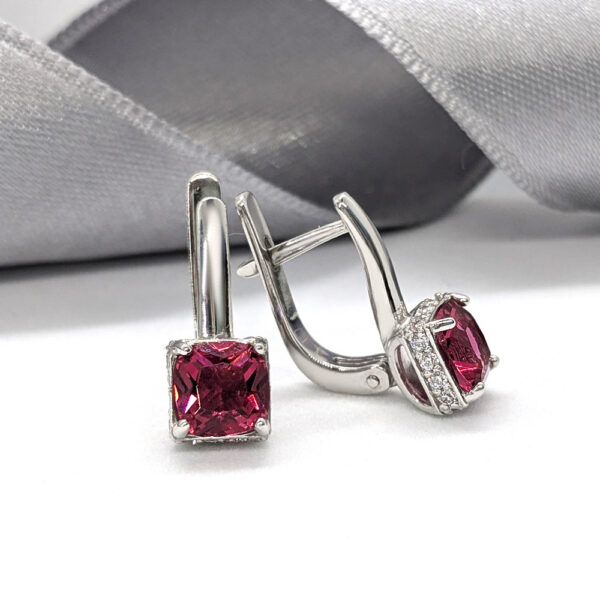 Erksad lakoonilised hõbedased kõrvarõngad roosade kristallidega