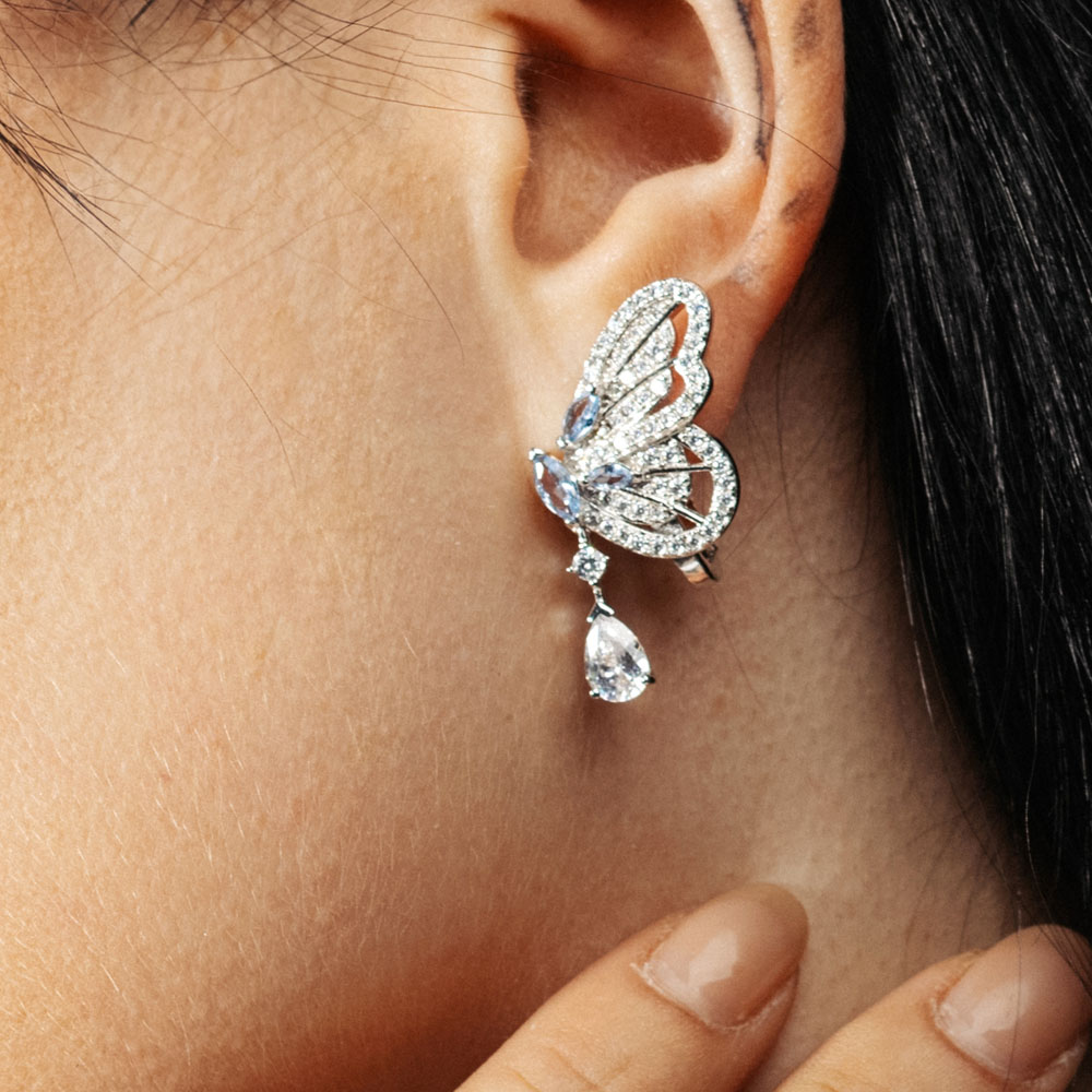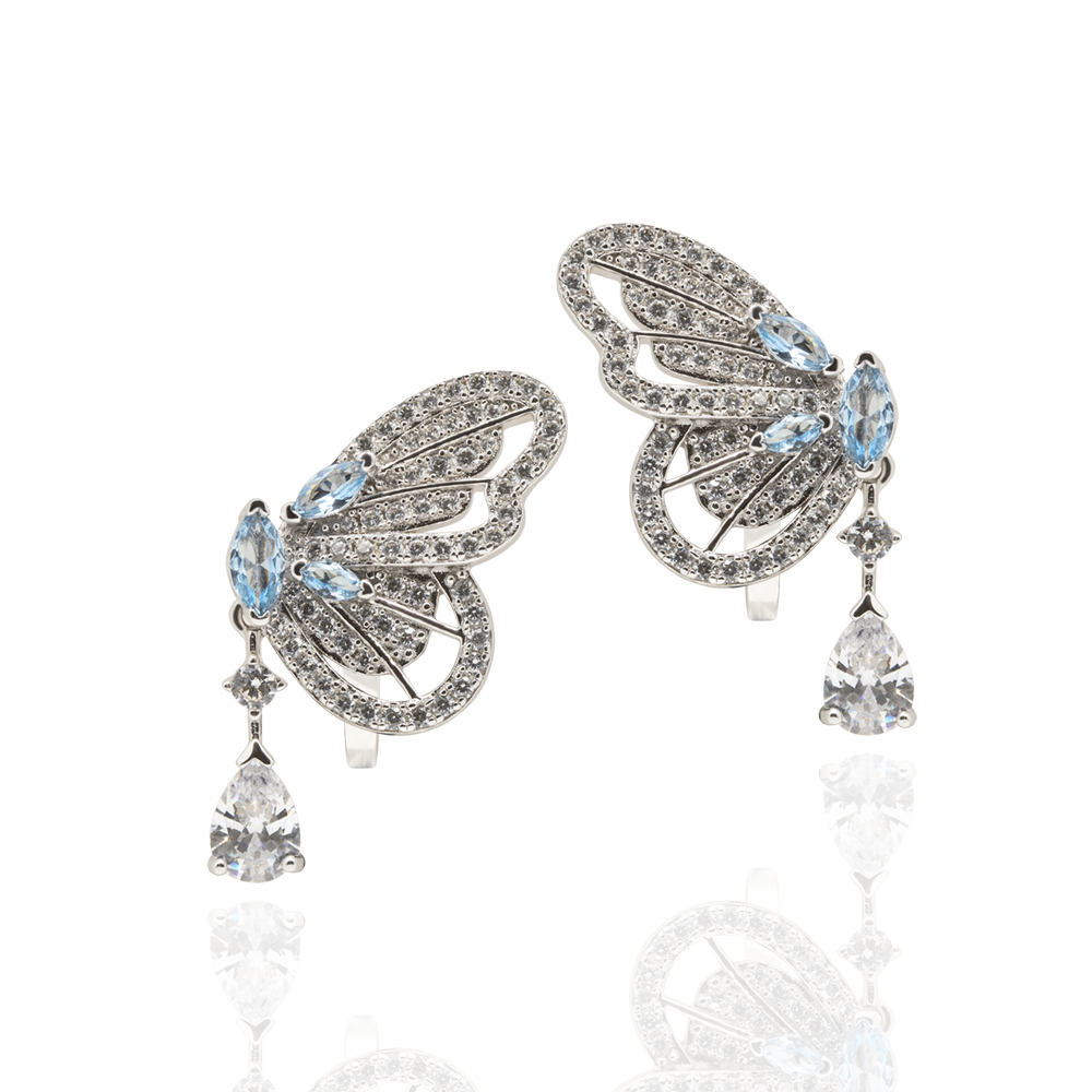 Need elegantsed “Volare” kõrvarõngad kollektsioonist “Itaalia puhkus” on valmistatud hõbedast ja kaunistatud säravate siniste tsirkoonkristallidega. Nende eripära on eemaldatav ripats-tilk, mis võimaldab ehteid kanda kahel erineval viisil. Usaldusväärne inglise lukk tagab mugavuse ja turvalisuse.