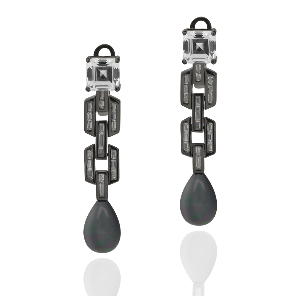 Need elegantsed “Firenze” kõrvarõngad kollektsioonist “Itaalia puhkus” on klassikalise stiili kehastus. Kõrvarõngad on valmistatud musta roodiumiga kaetud hõbedast ja kaunistatud kultiveeritud mustade pärlitega. Selged jooned ja sädelevad kristallid rõhutavad ehte rafineeritust. Töökindlad katalaani lukud tagavad mugavuse ja turvalisuse kandmisel.