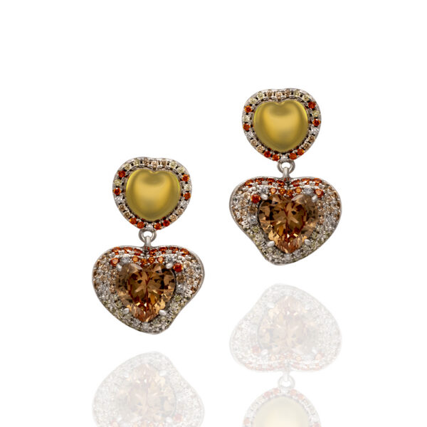 Hõbedased kõrvarõngad “Amalfi” kollektsioonist “Itaalia puhkus” ühendavad soojuse ja rafineerituse. Ehe on valmistatud hõbedast, millel on topeltroodiumkate – valge ja kollane, mis loob ainulaadse kahevärvilise efekti. Ülemine südamekujuline element on kaunistatud väikeste kristallidega ja alumisel on suur morganiiti imiteeriv kristall, mida ümbritsevad paljud säravad kristallid. Tänu kruvikinnitustele on kõrvarõngad kindlalt kõrvas.