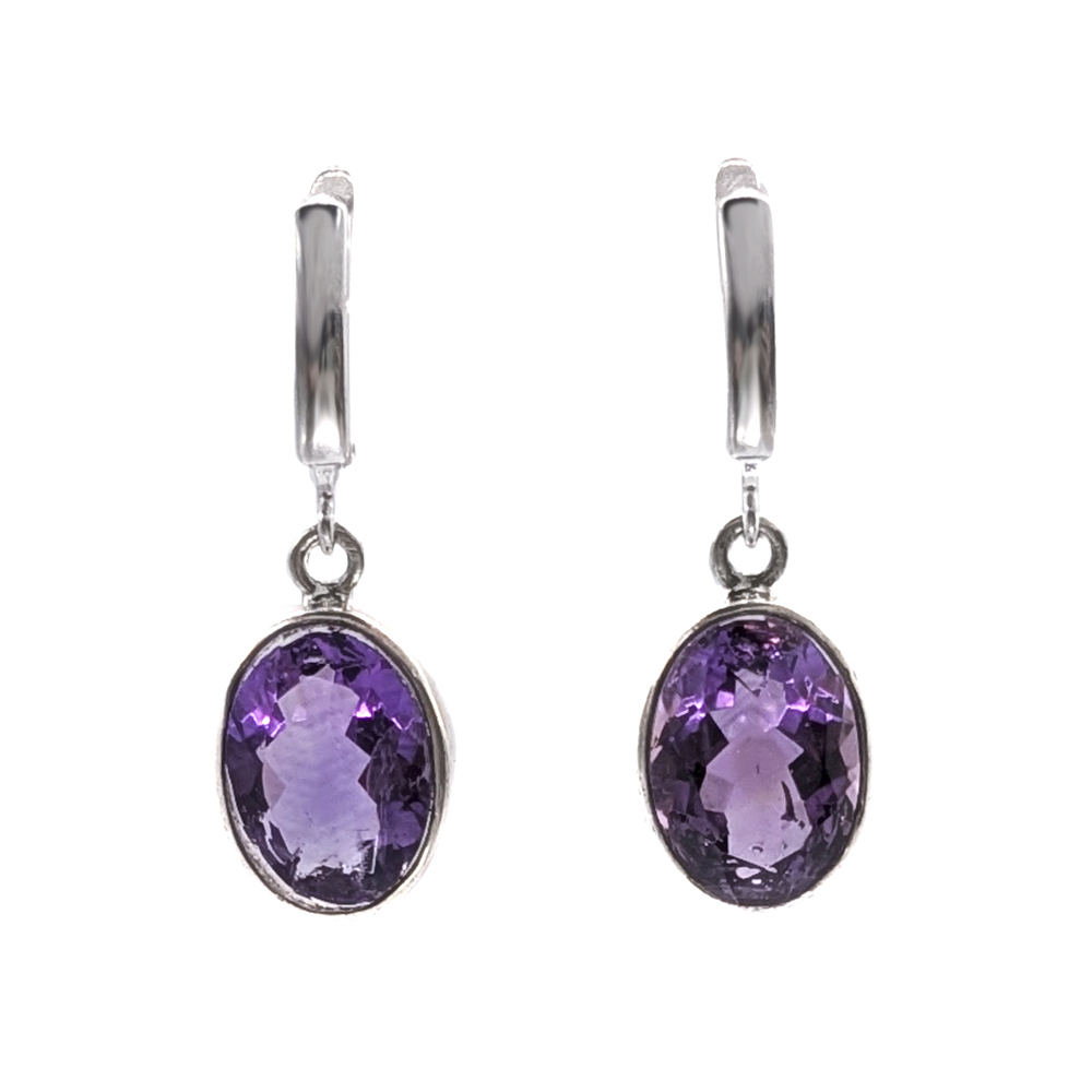 Solana kõrvarõngad erksate ametüstidega rangelt bezel-kinnitusse paigutatud. Käsitsi valmistatud ja minimalistlik disain neile, kes hindavad ajatut klassikat.