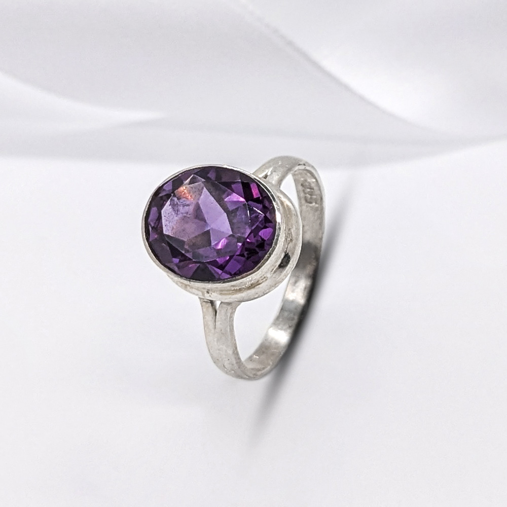 Solana sõrmus on igavese sära ja minimalistliku elegantsi kehastus. Ehte südameks on elav ja rikkalik ovaalne ametüst, mis on paigutatud range ja stiilsesse kinnisesse raami. See sõrmus on loodud neile, kes hindavad joonte puhtust ja looduse ilu.