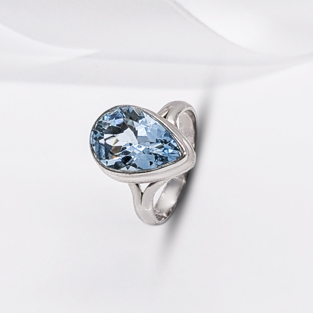 Solana sõrmus on igavese sära ja minimalistliku elegantsi kehastus. Ehte südameks on elujõuline, rikkaliku värviga hele-sinise topaas, mis on paigaldatud rangelt ja stiilselt bezel-kinnitusse. See sõrmus on loodud neile, kes hindavad joonte puhtust ja looduse ilu.