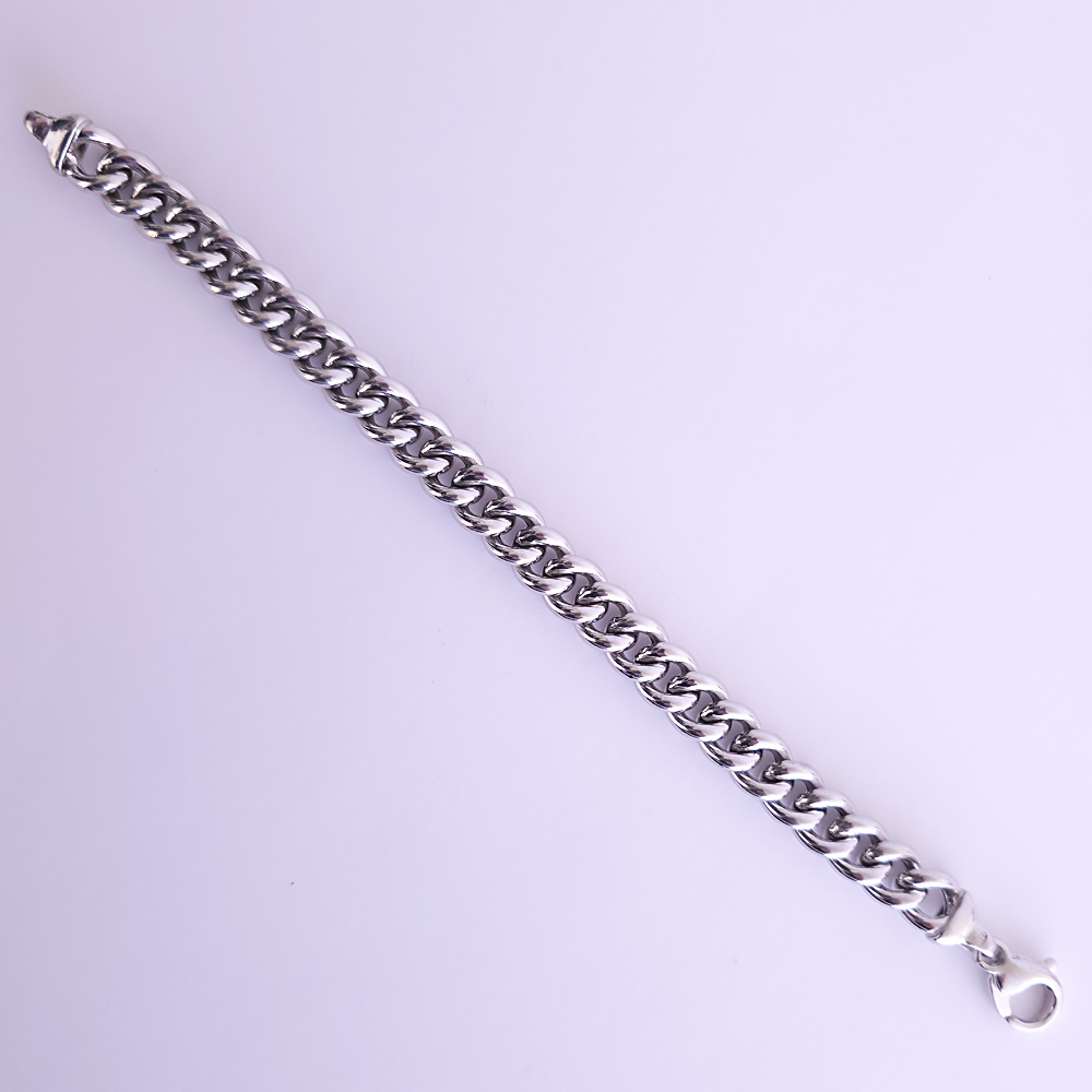 Pƶrrƶinen hopeinen kuubalainen rannekoru, joka nƤyttƤƤ massiiviselta, mutta ei ole niin painava, koska se on ontto.