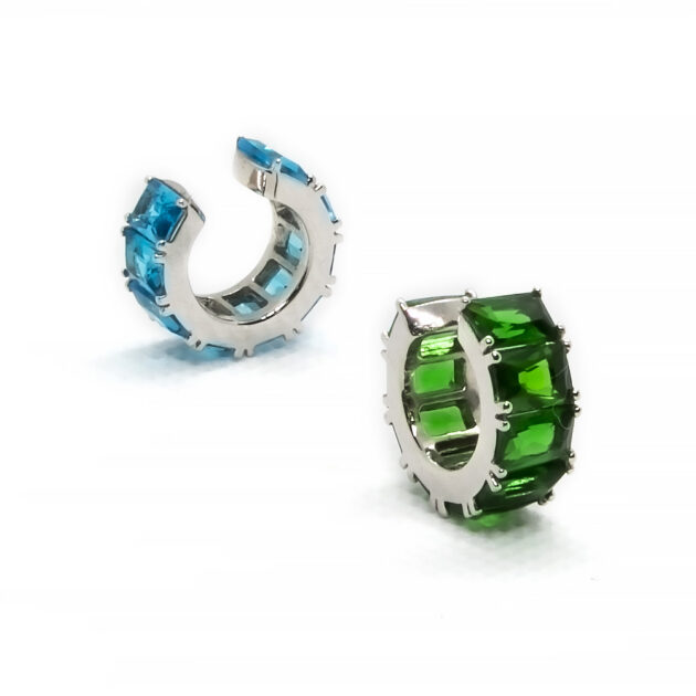 Tyylikkäät leveät hopeiset rannekorut oktaagoneilla. Valitse värisi – tummanvihreä, kirkkaan sininen, valkoinen, violetti tai musta!