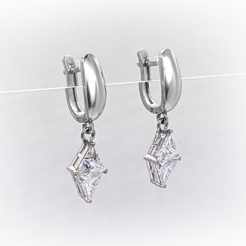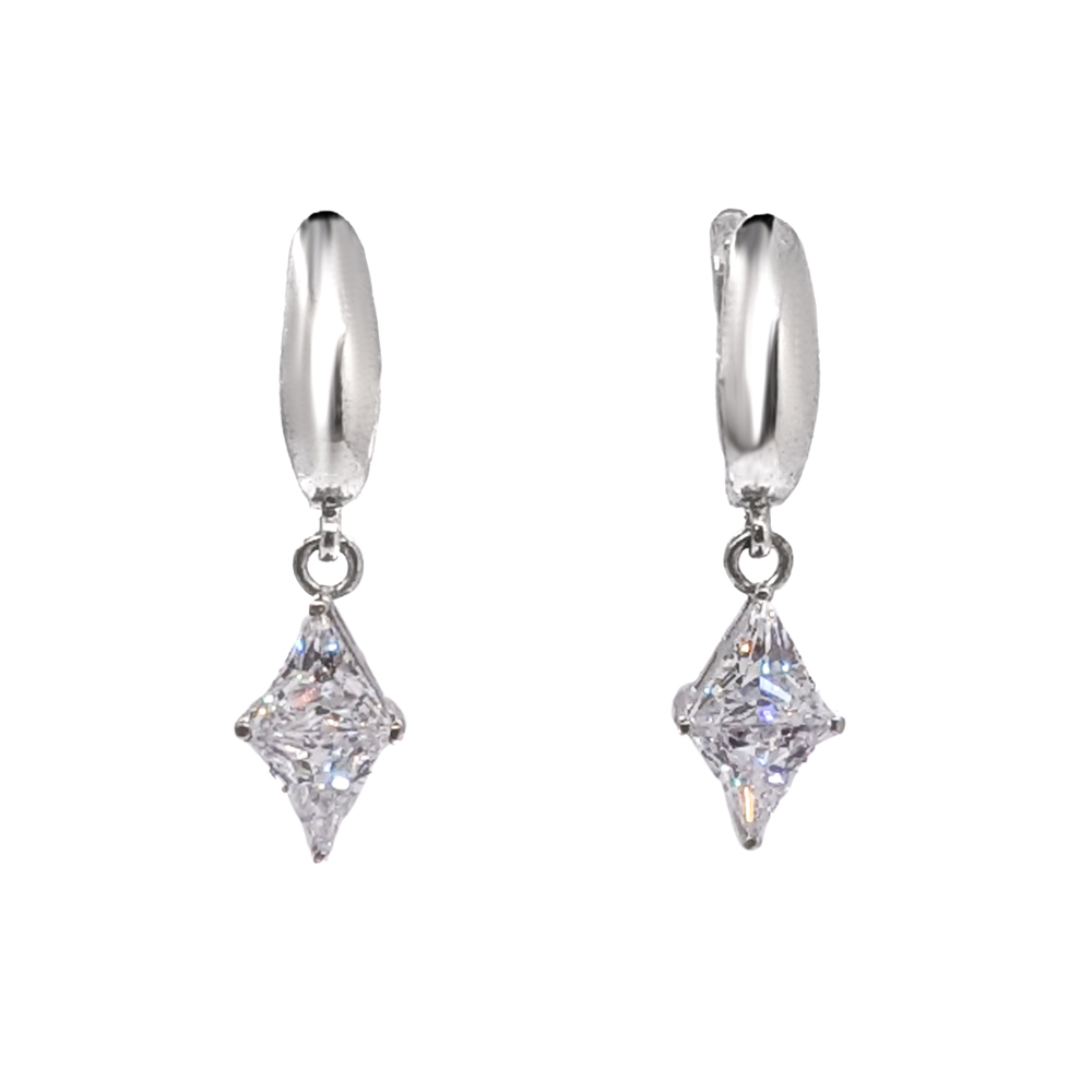 Riippuvat hopeiset korvakorut valkoisilla kristalleilla