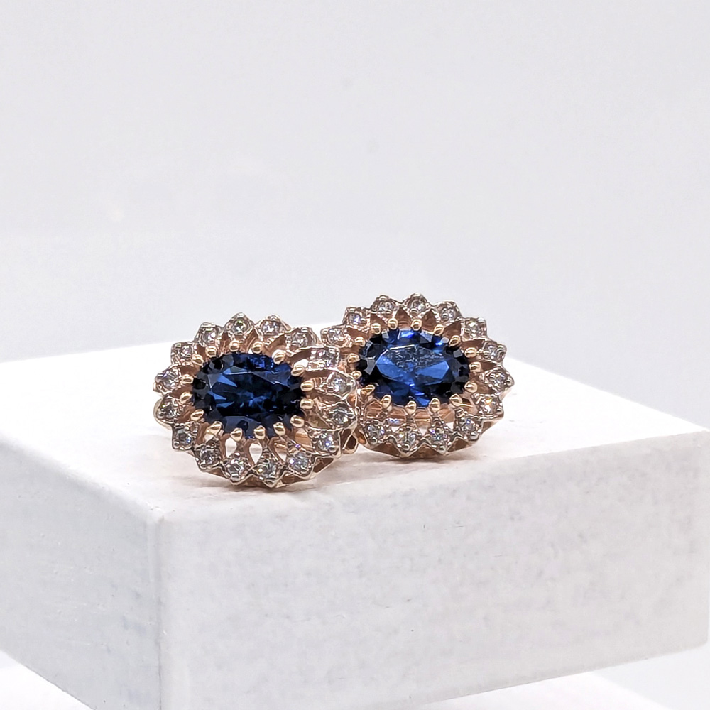 Almost royal style earring with bright sapphire-blue crystals with white crystals surrounding.