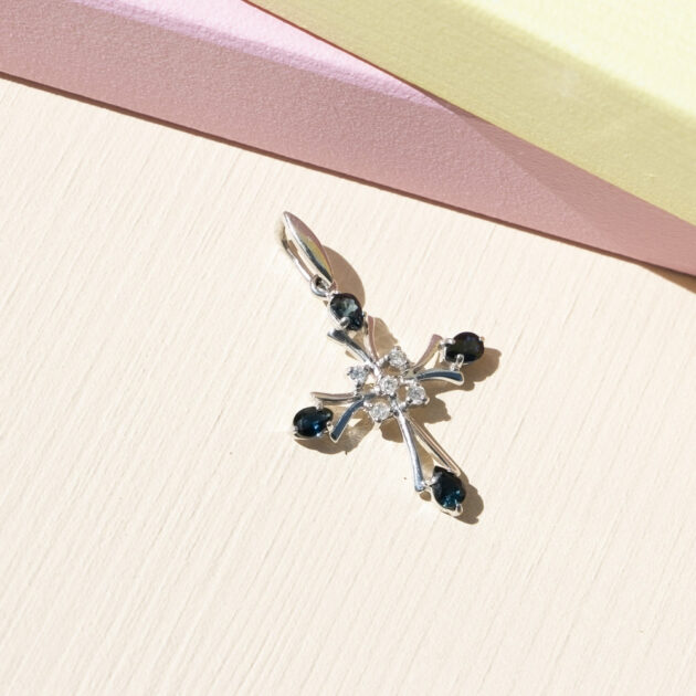 Be the first to review “Elegant silver Maltese cross-pendant with sapphires and diamonds P-6486” Cancel reply