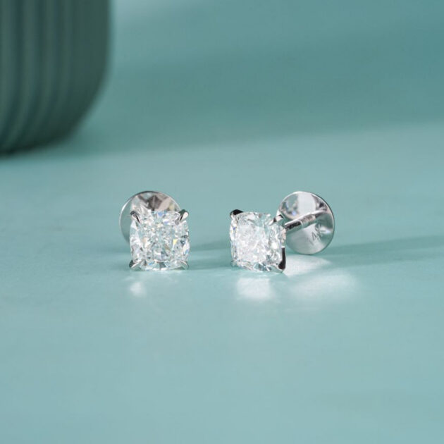 Elegant stud earrings in white gold with 1ct lab diamonds cushion cut “Vespera”