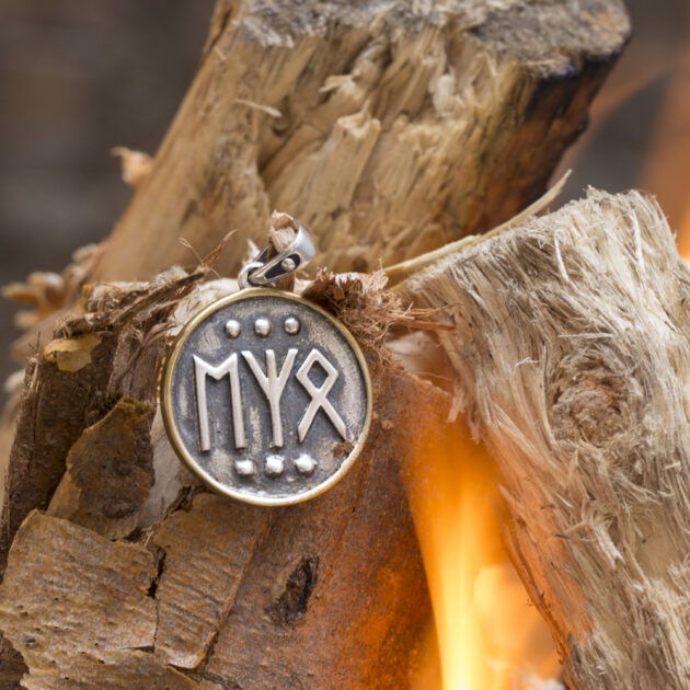 The runic writing on the pendant is an ancient spell for family defense from witchcraft and spoilage. It’s owner is calling upon good sacred powers to protect and empower his family. The defense of the amulet is mild: «Let the trouble to leave me besides».