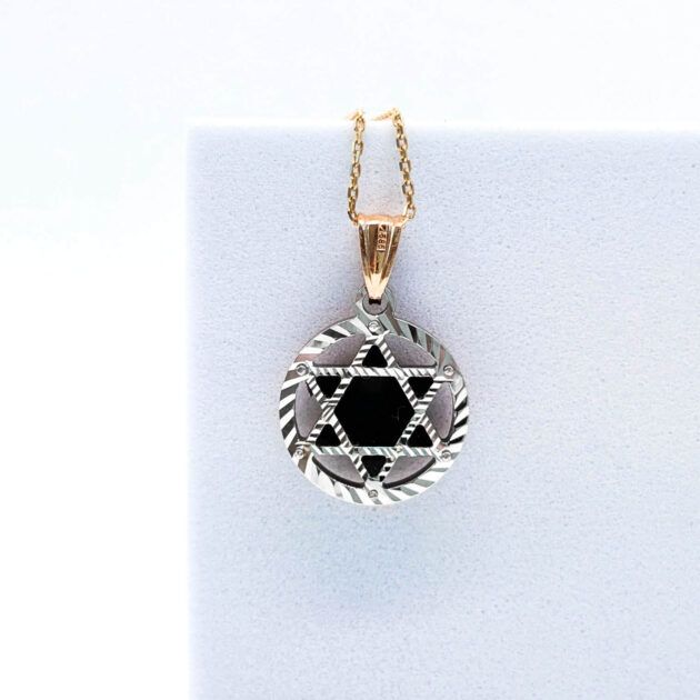 Double-sided pendant “Magen David” with black cubic zirconia, one side – rose gold, another – white gold.