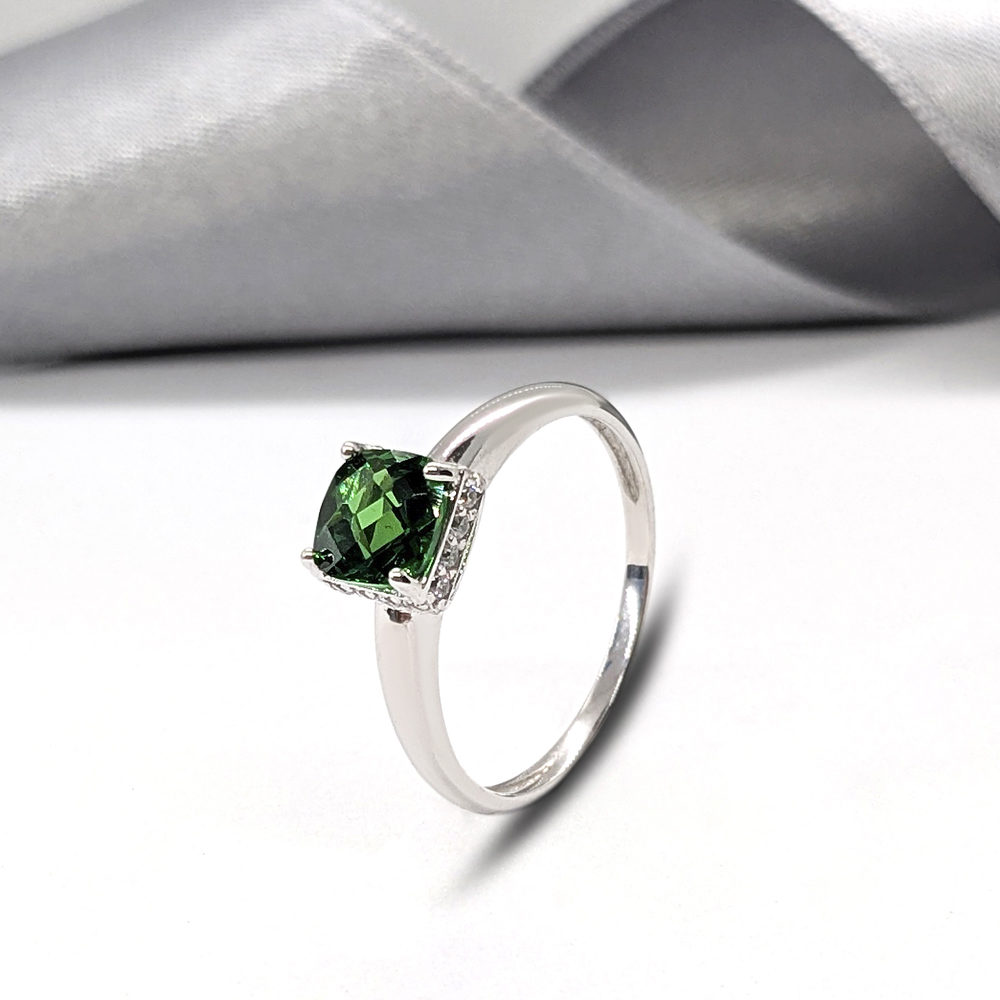 Laconic silver ring with green crystal