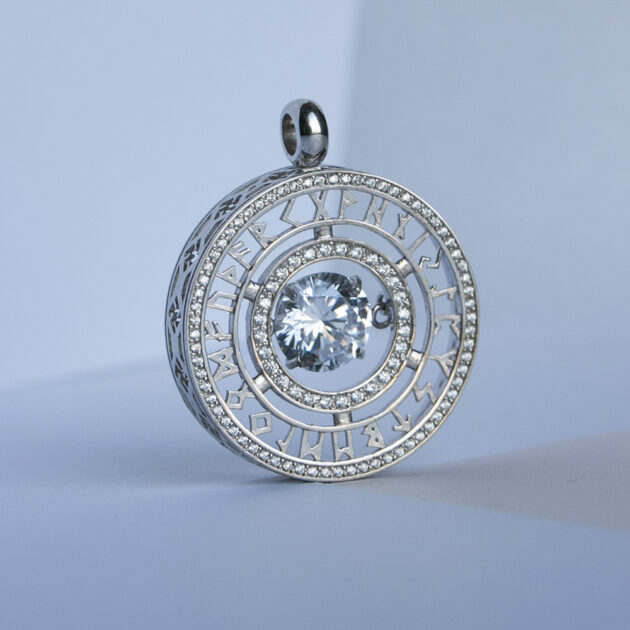 The full runic circle surrounds the crystal, and on a pendant’s side – the symbol of Sun Circle.