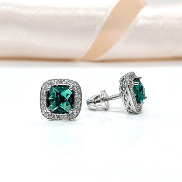 Be the first to review “Silver halo stud earrings with emerald-green crystal” Cancel reply