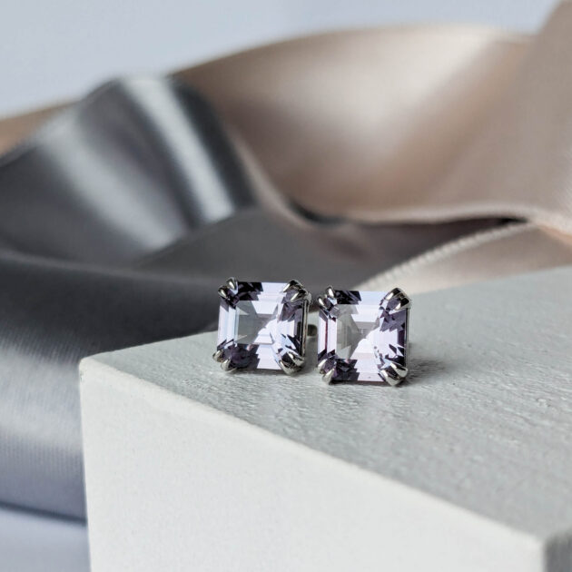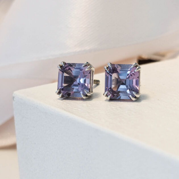 Stylish silver stud earrings with lab grown alexandrites E-8206