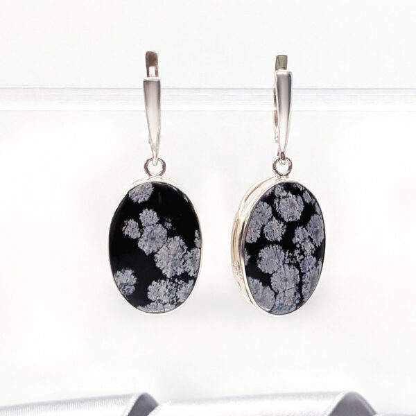 “Winter Night” Earrings Silver and natural snowflake obsidian