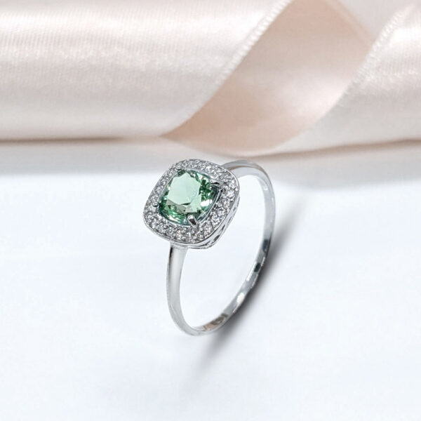 Серебряное кольцо с мятно-зеленым фианитом